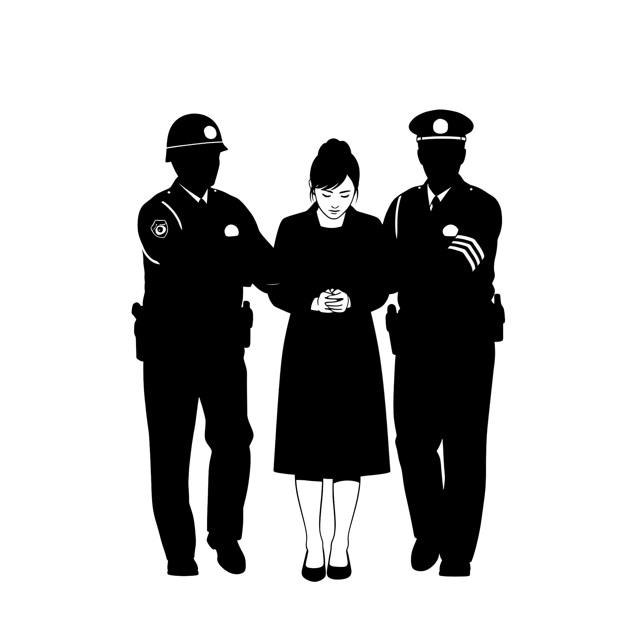警察官に逮捕されている女性